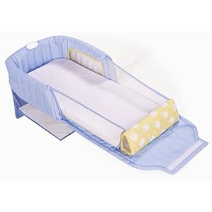 The sleeper folds up nicely for convenient portability and compact storage. A durable, cloth-covered U-shaped "wall" surrounds baby’s head and torso to limit their movement and help alleviate problems with parents from rolling onto them. The soft head barrier reduces the risk of entrapment, while the foot wedge--which could be used being a sleep positioner in future months--ensures baby stays snugly inside the sleep area. The supportive bottom can be a cozy resting spot using the included soft cover, vinyl covered mattress, and removable, machine washable mattress sheet.
